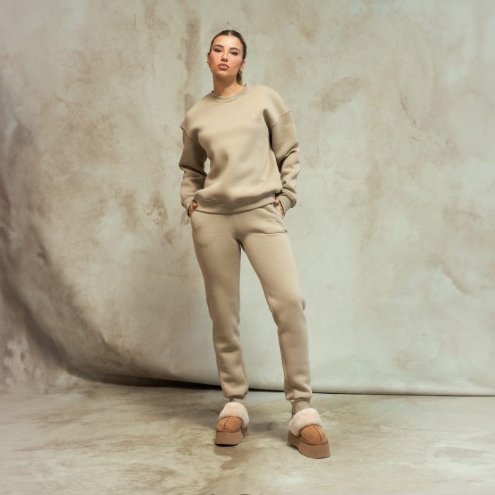 Долни женски тренерки со врвки за врзување и рендер на ногавиците.