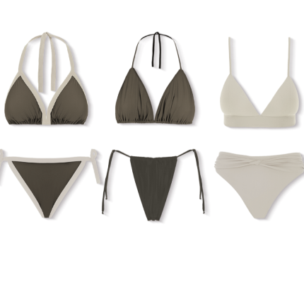 Сет од три дводелни костими за капење што овозможува комбинација на боите и моделите.