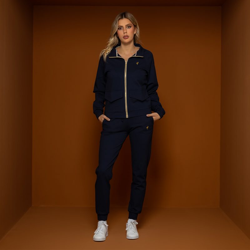Долниот дел тренерки е тесен модел и е изработен со врвка за врзување и рендер на ногавиците.