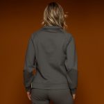 Горна женска тренерка во сиво-маслинеста боја, изработена со краток патент и декоративен патент од страна.