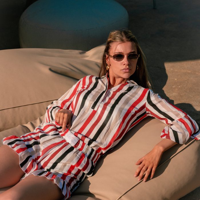 Сет од кошула и бермуди, изработени со карнери на ракавите и бермудите.